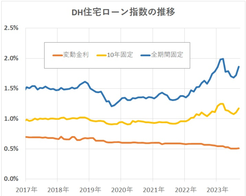 しかし固定金利については変動が見られており、固定期間選択型(3年,10年)については前月よりも上昇しています。