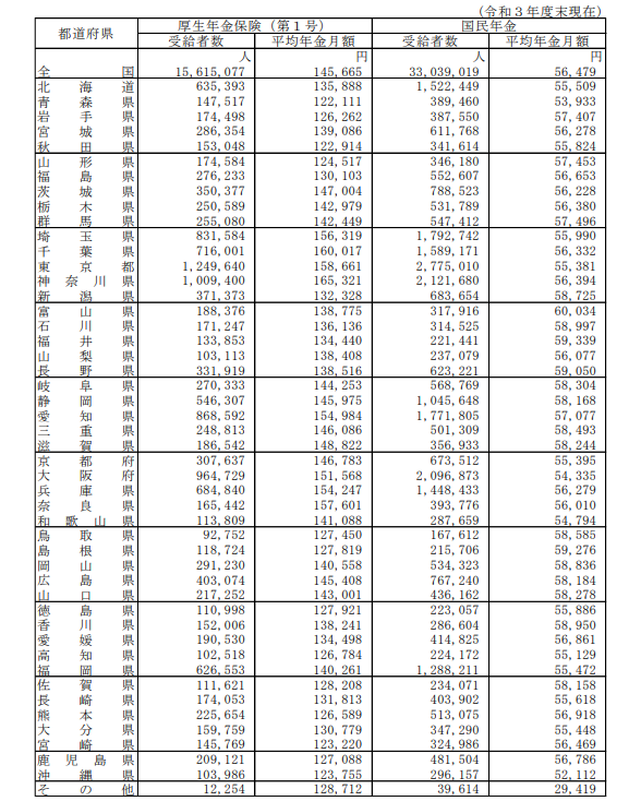 資料データの中に、都道府県別の平均年金受給額もありましたので、参考としてご紹介致します。